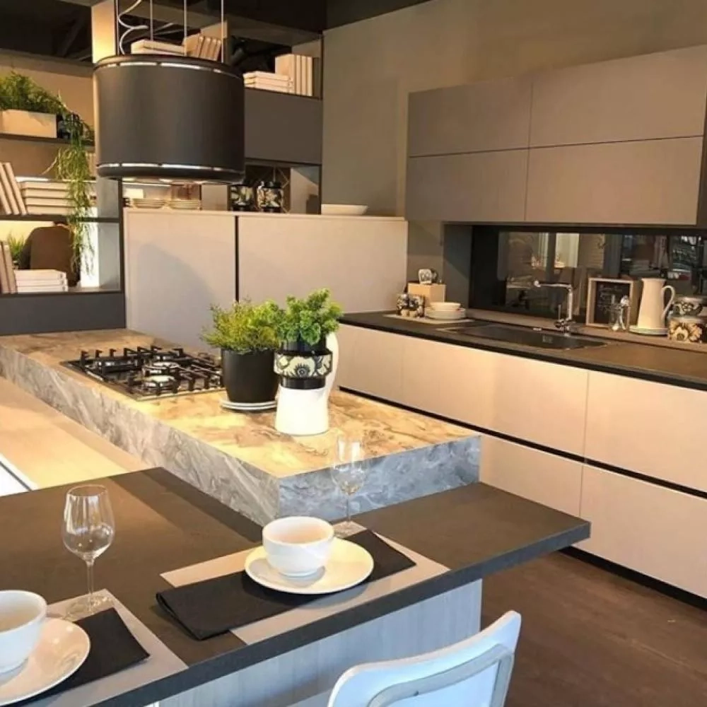 Nabízí maximální komfort při vaření: pomocí dálkového ovládání se digestoř elektromechanicky spouští nad varnou desku, čímž se zvýší účinnost sání. V klidové poloze je digestoř u stropu, kde neruší ve výhledu do obytné části.