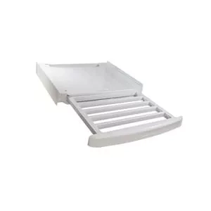 Univerzální mezikus mezi pračku a sušičku 2 v 1 značky Wpro SKP 101 s výsuvnou policí a věšákem, které lze obměňovat dle aktuální potřeby.