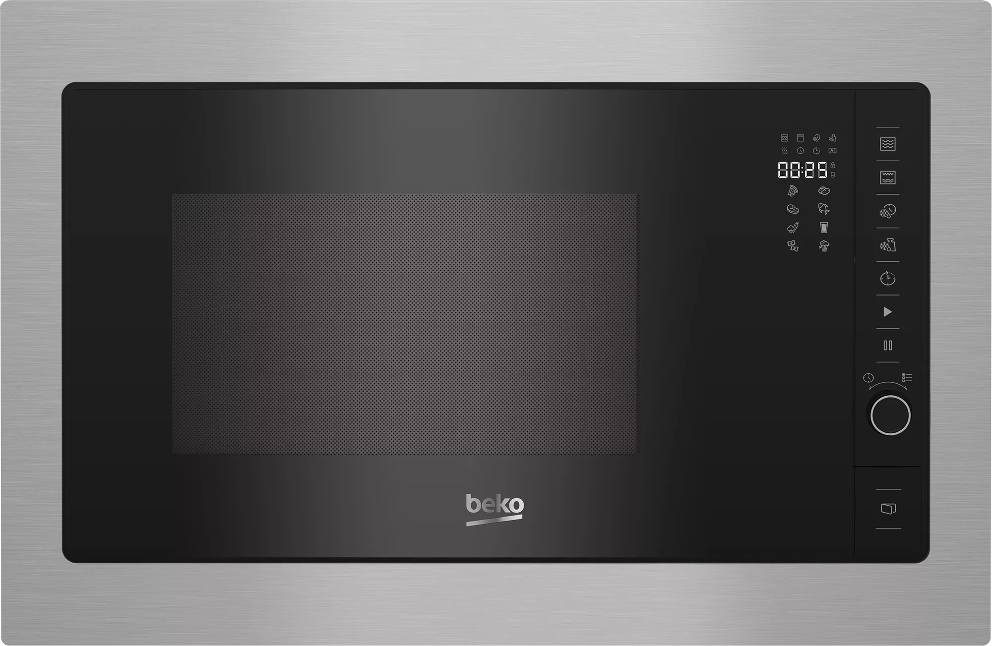 Vestavná mikrovlnná trouba Beko BMGB 25332 BG s grilem, automatickými programy, vařením ve více krocích a elektronickým ovládáním.