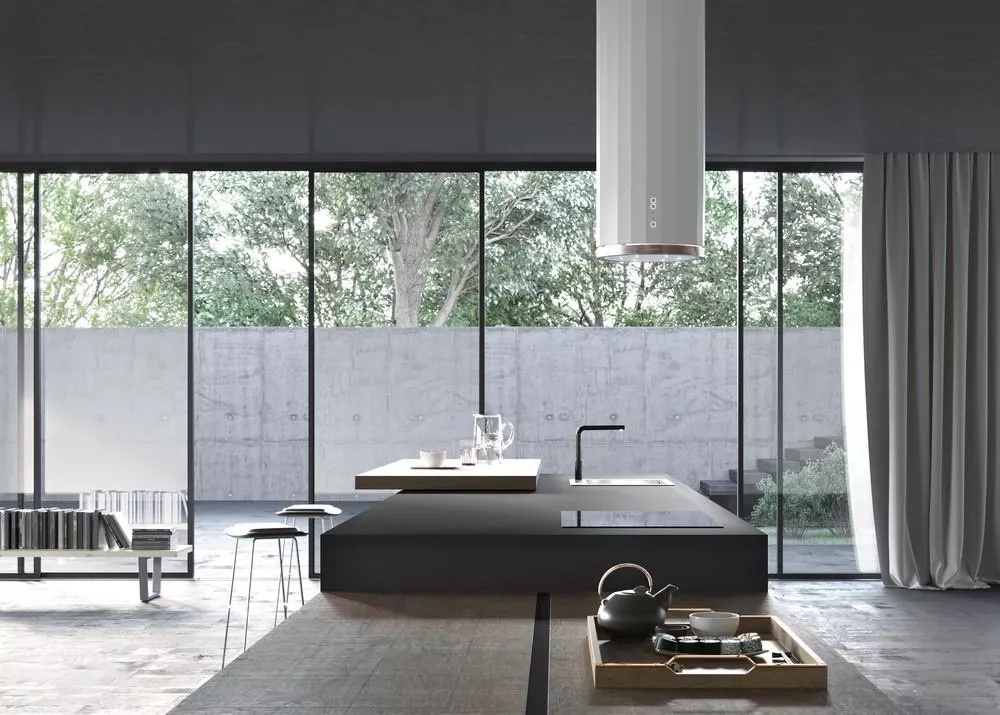 Inspirací pro design luxusní digestoře CORINTHIA ISOLA se stal antický korintský sloup. Spojuje v sobě moderní trendy s prvky antiky. Svislé fazety na jejím povrchu dodávají jedinečný vzhled jinak klasickému tvaru, spodní část matně bílé digestoře je navíc zakončena páskem z odlišného materiálu v imitaci tibetského stříbra.