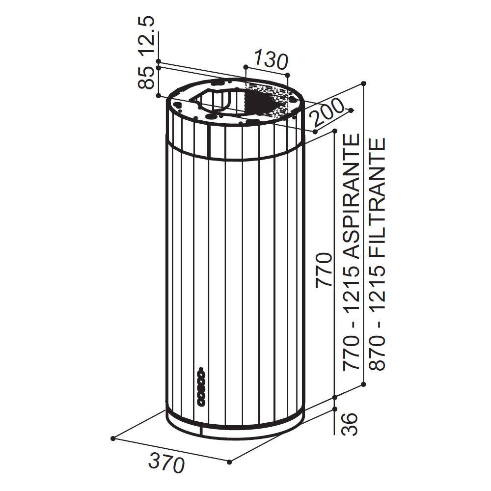 Štěrbinové sání na obvodu sací zóny plně nahrazuje absenci vodorovné části odsavače, toto technické řešení spolu s výkonnou ventilační jednotkou zajišťuje velmi dobrou účinnost přímého zachycení par.