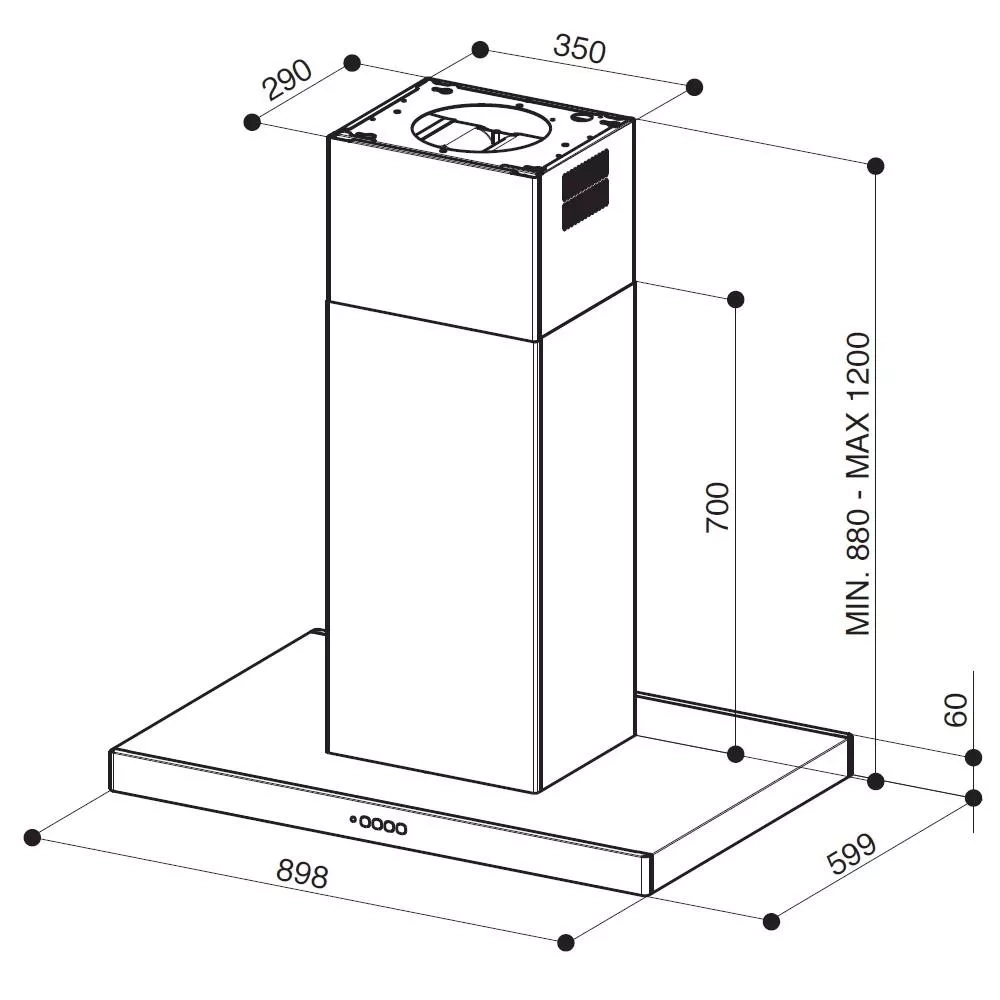 Lze ji také propojit s externím motorem na fasádu MISTRAL. V tomto případě jsou technické parametry digestoře shodné s parametry externí ventilační jednotky.