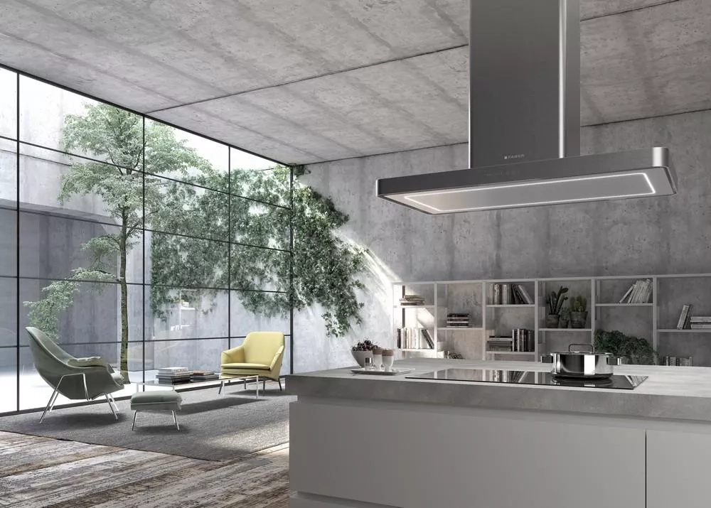 Čisté linie digestoře doplňuje výkonná a úsporná ventilační jednotka EVO v energetické třídě A.