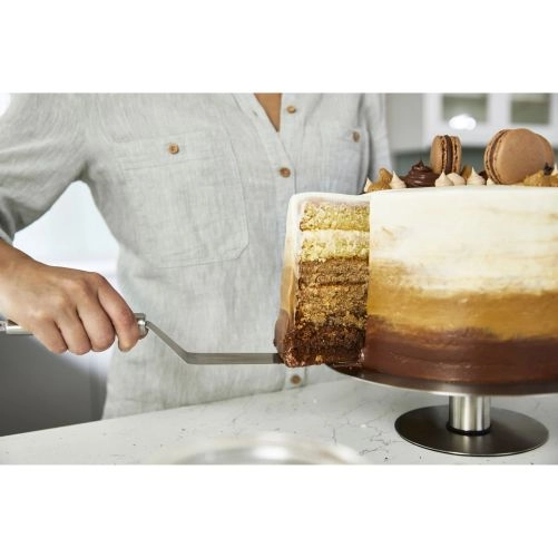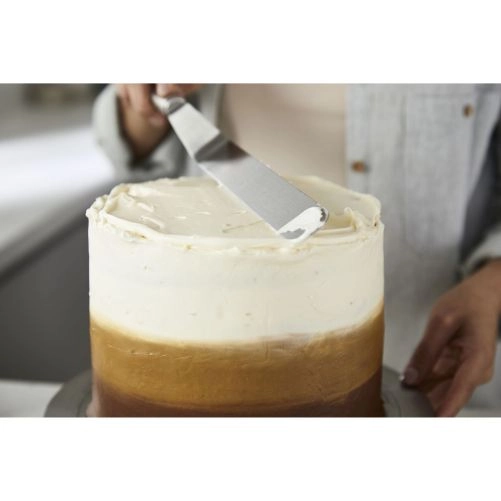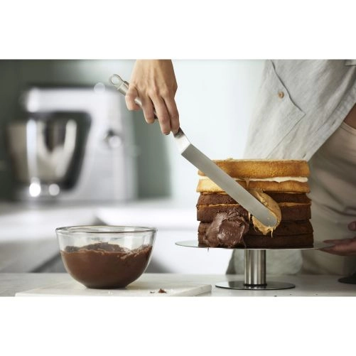 Paletový nůž Kenwood je nepostradatelným nástrojem pro každého cukráře, ať už profíka nebo někoho kdo peče pro radost. Je ideální pro nanášení a vyhlazování krémů, polev nebo šlehačky na dorty a další dezerty. Díky dlouhé, ploché čepeli zajistí rovnoměrné rozetření bez hrudek a snadno vytvaruje dokonale hladký povrch. Tento nůž ma navíc zkosenou čepel. Ta umožňuje přesnější kontrolu při nanášení a vyhlazování krémů, protože drží ruku nad povrchem dortu, což zajišťuje čistší práci bez otisků prstů. Tento nůž také umožňuje přesné tvarování a manipulaci s jemnými dekoracemi. Má pohodlné madlo a lze ho mýt v myčce nádobí.