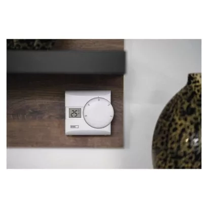 Manuální termostat s displejem pro základní regulaci teploty v domácnosti.