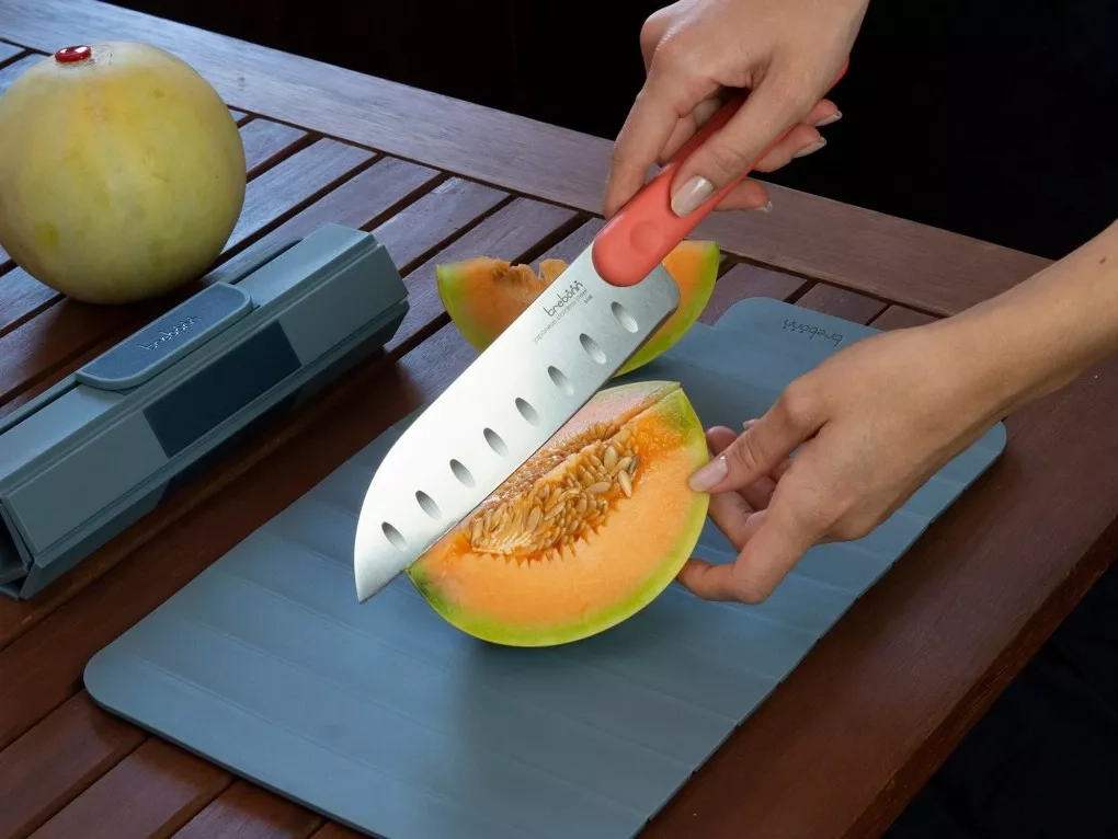 Revoluční, lehké a snadno skladovatelné rolovací prkénko. Zaujme dokonale plochým designem a dostatečnou flexibilitou pro přenášení a manipulaci nasekaných ingrediencí. Po srolování šetří místo v kuchyni. Nová řada barev dodává rolovacímu prkénku dekorativní prvek. Dostupné v atraktivní korálové barvě. Designově všestranní pomocníci Trebonn - italské, praktické a trendy kuchyňské náčiní.