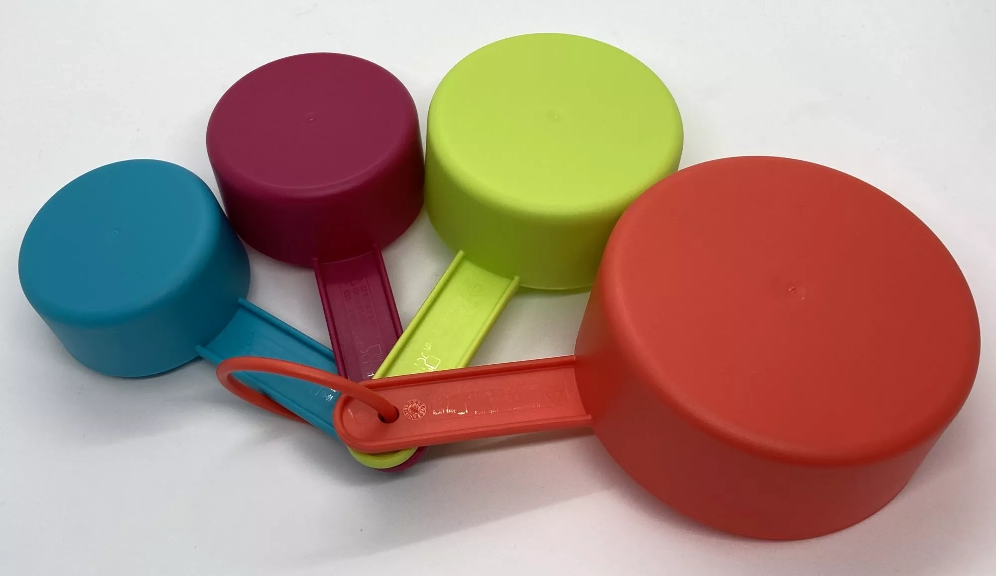 - Odměrky jsou spojené praktickým kroužkem pro zavěšení.
