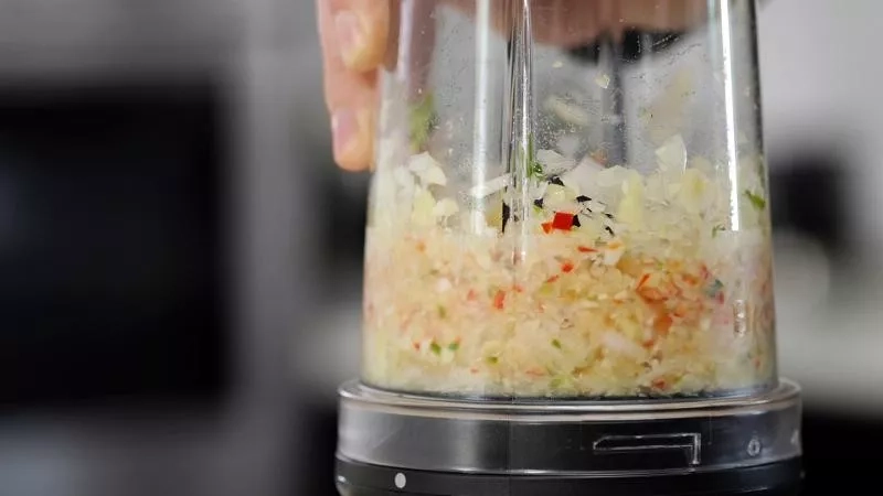 - mini kuchyňský robot s nádobou o objemu 450 ml - nasekáte cibuli, česnek, bylinky nebo připravíte dipy a dresinky