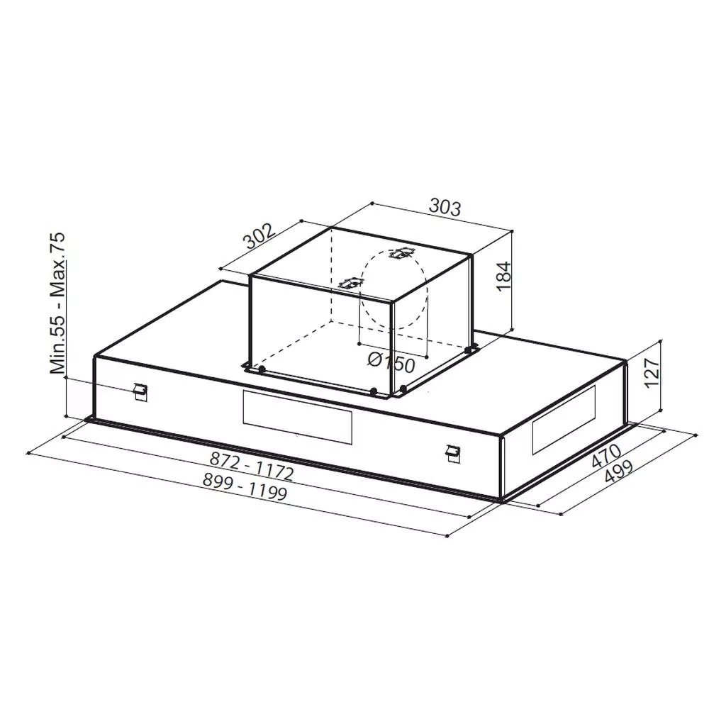 Digestoř je určena k plnému zapuštění do stropního podhledu a zajistí maximální volný prostor nad pracovní plochou. Při externím umístění motoru se navíc snižuje výška sádrokartonového podhledu a potrubí je možné napojit jak z boční části korpusu, tak shora.