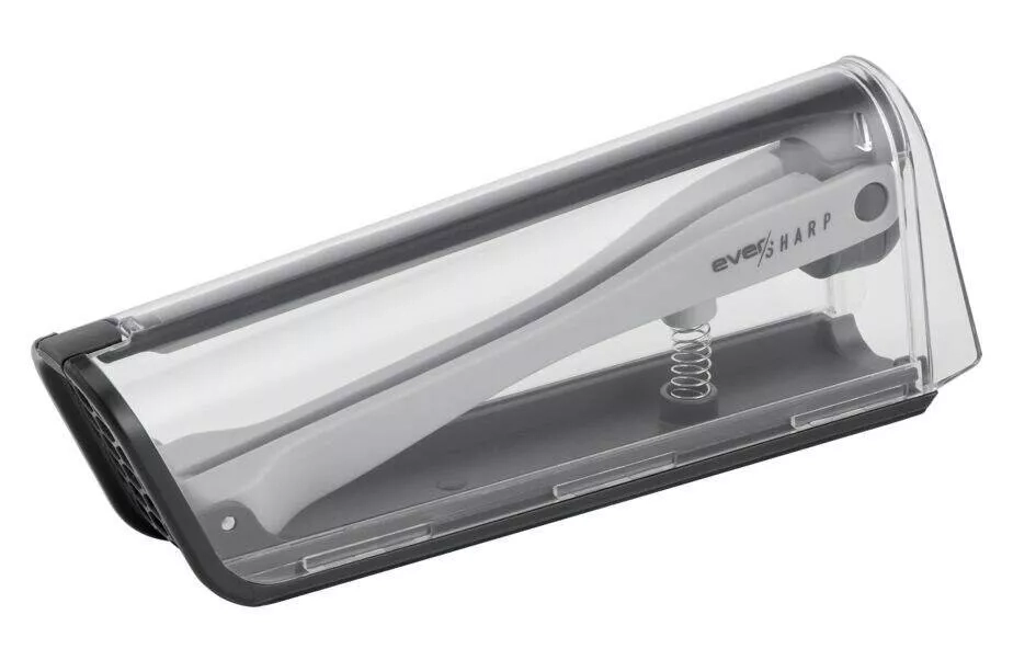 Ever Sharp je nejbezpečnější a nejinovativnější způsob krájení a broušení. Díky patentované technologii broušení, která je integrovaná do krytu na nůž, je čepel automaticky broušená v dokonalém úhlu, a to před a po každém použití. Díky integrovanému systému uzamykání, které se snadno odemkne stisknutím rukojeti, zůstane kuchyňský nůž na místě, dokud nebude připraven k použití. Pro maximální odolnost je tento všestranný kuchařský nůž vyroben z německé nerezové oceli a jeho délka 16,5 cm uspokojí všechny vaše každodenní potřeby při přípravě surovin. A díky svému líbivému designu můžete Ever Sharp vystavit na jakékoli kuchyňské lince.