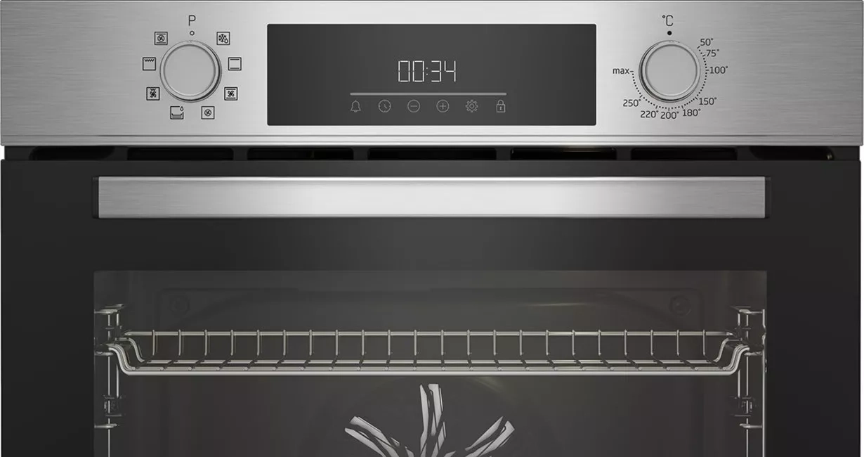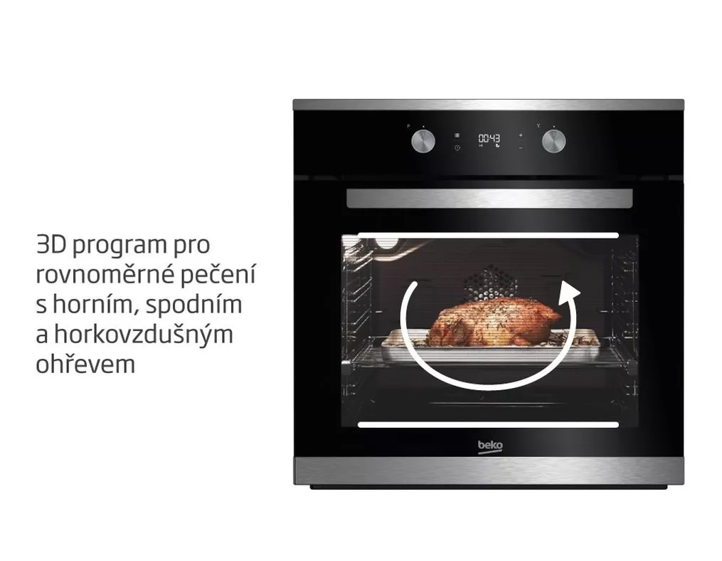 Vestavná multifunkční trouba Beko BBIM 12301 X z řady Beyond v energetické třídě A s funkcí AeroPerfect™, 3D pečení, funkcí SimpleSteam parním čištěním, 2x teleskopickým výsuvem plechů a 8 programy.