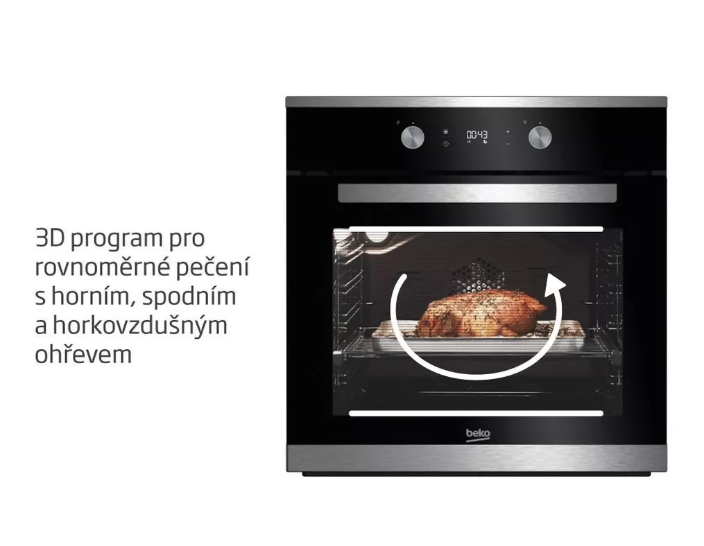 Vestavná multifunkční trouba Beko BBIM 13300 X z řady Beyond v energetické třídě A s funkcí AeroPerfect™, 3D pečení, funkcí grilu a 8 programy.