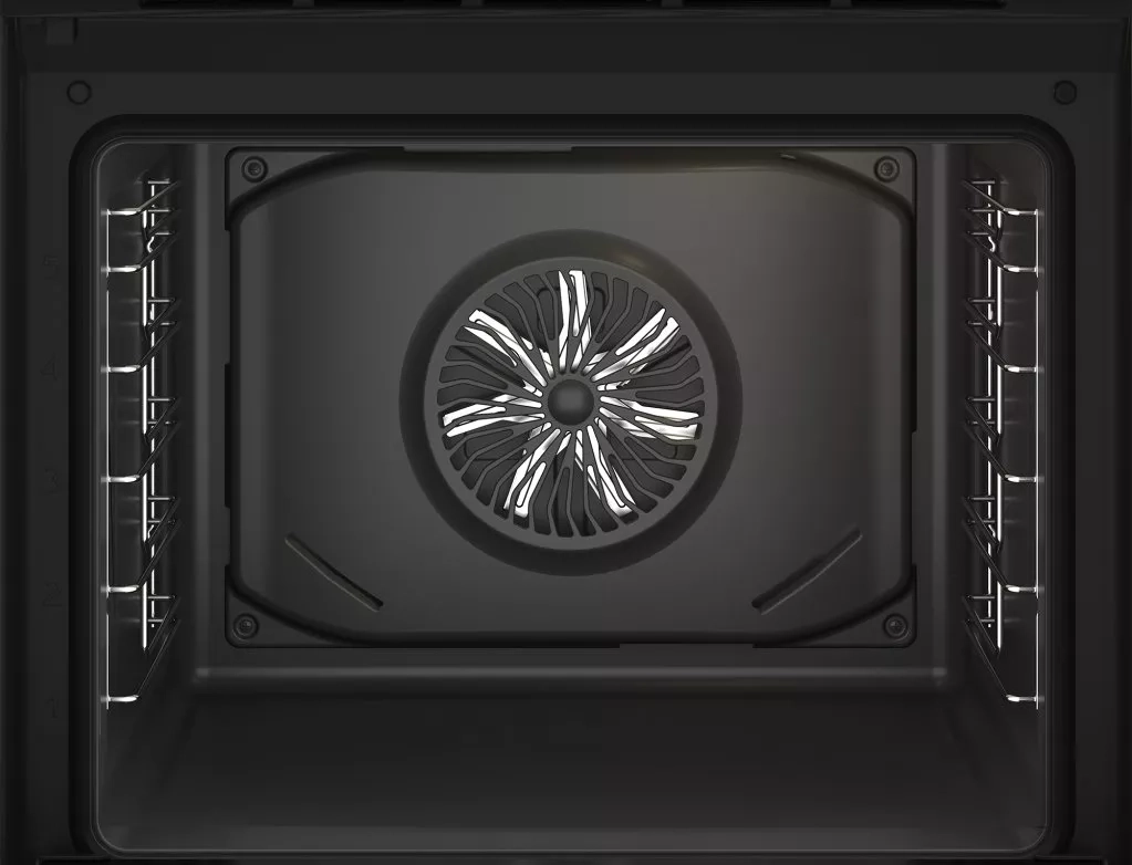Program 3D pečení kombinuje horní a spodní ohřev se zadním ohřevem z kruhového topného tělesa a s ventilátorem. Teplo tak jde ze všech tří stran trouby, takže se jídlo propeče rychleji a rovnoměrně.