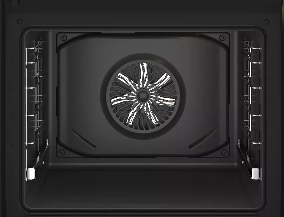 Program 3D pečení kombinuje horní a spodní ohřev se zadním ohřevem z kruhového topného tělesa a s ventilátorem. Teplo tak jde ze všech tří stran trouby, takže se jídlo propeče rychleji a rovnoměrně.