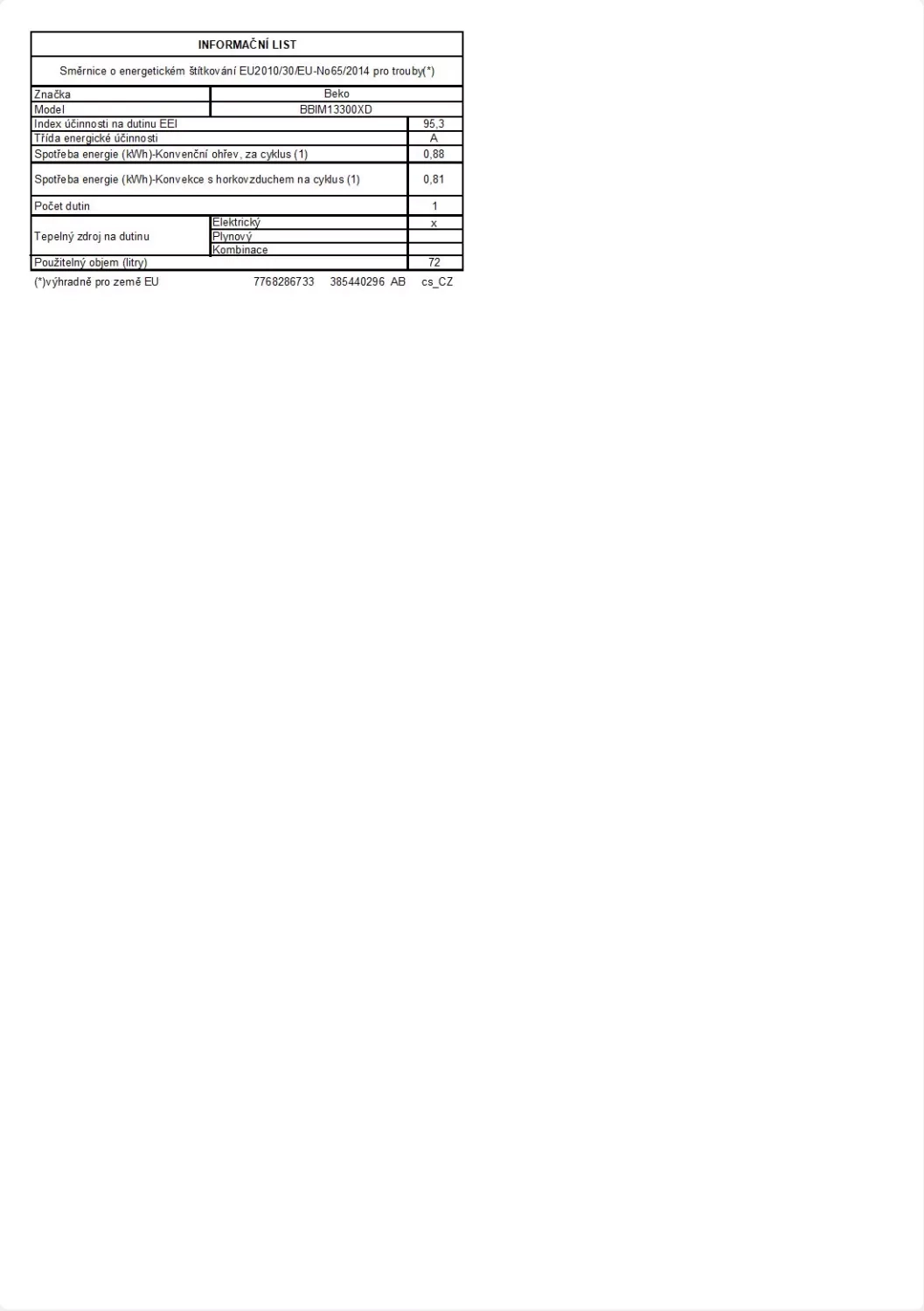 o Objem: 72 l