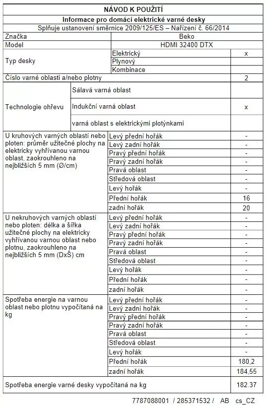 2 varné zóny: 160 mm/1400 W, 200 mm/3000 W