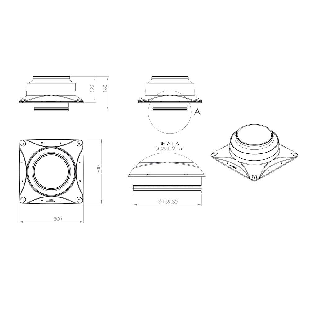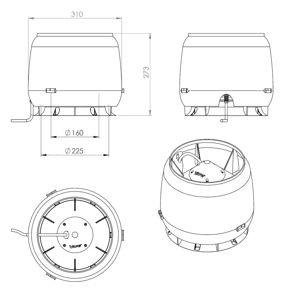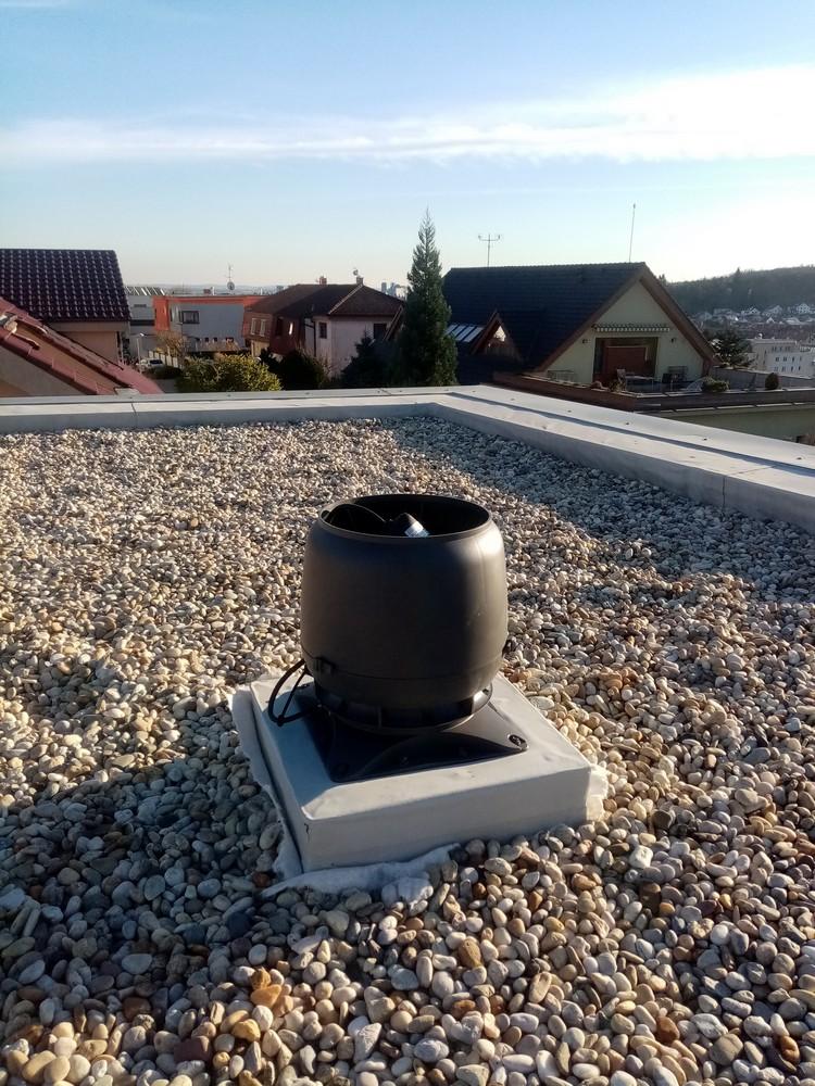 Externí ventilační jednotka s montážní deskou 30x30cm od finského výrobce VILPE je vhodná pro instalaci na rovnou střechu. Je osazena motorem německé výroby EBM, který dosahuje výkonu 850m3/h.