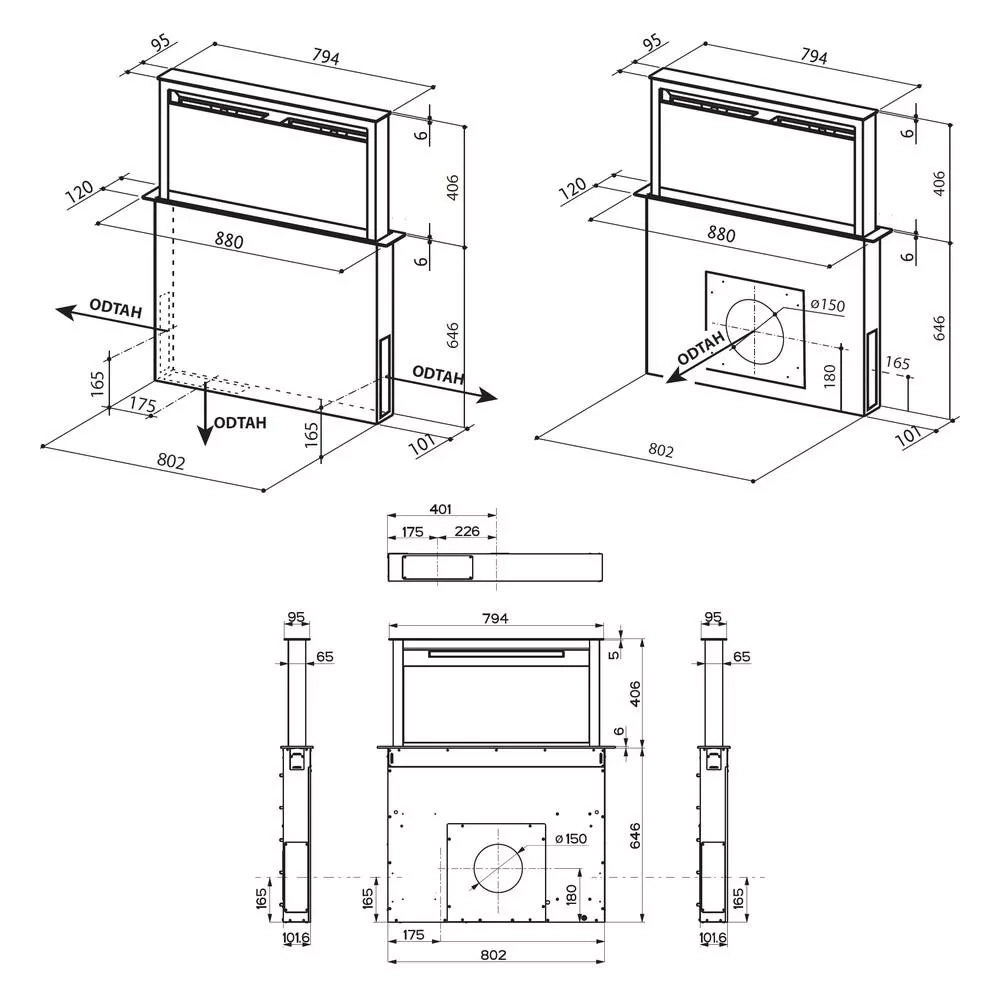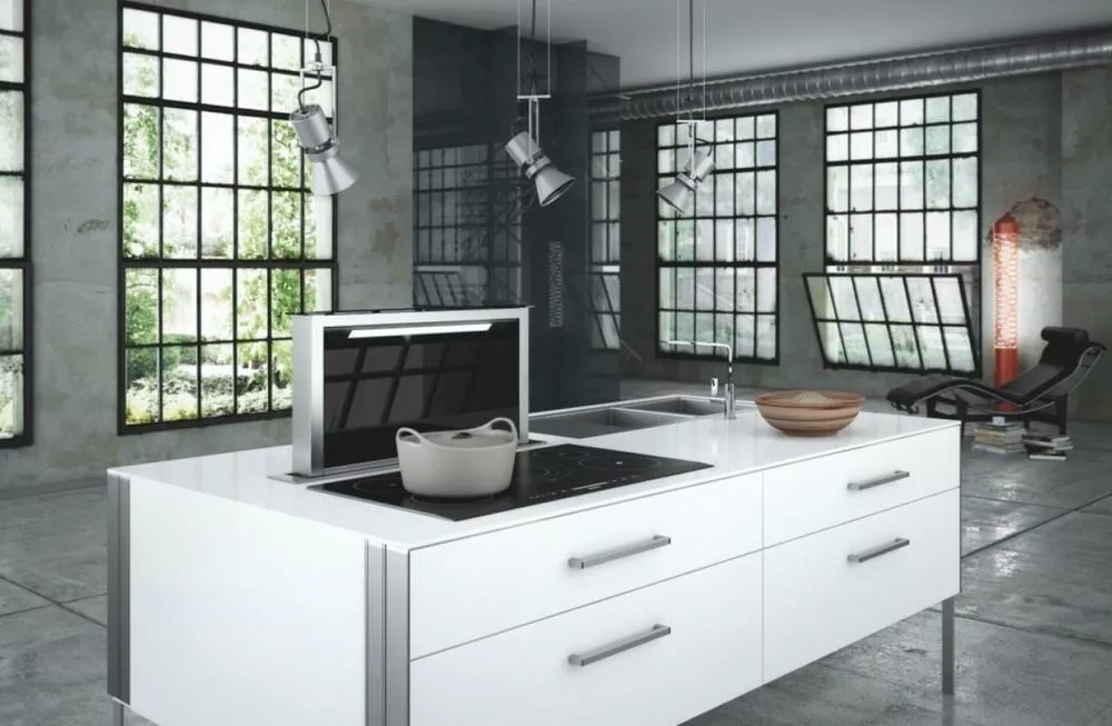 Je určena k instalaci přímo do pracovní desky za varnou plochu. Jakmile ji zapnete, vysune se z pracovní desky sací část a začne odsávat páry a pachy nejen z prostoru nad varnou deskou, ale rovnou z celé kuchyně.