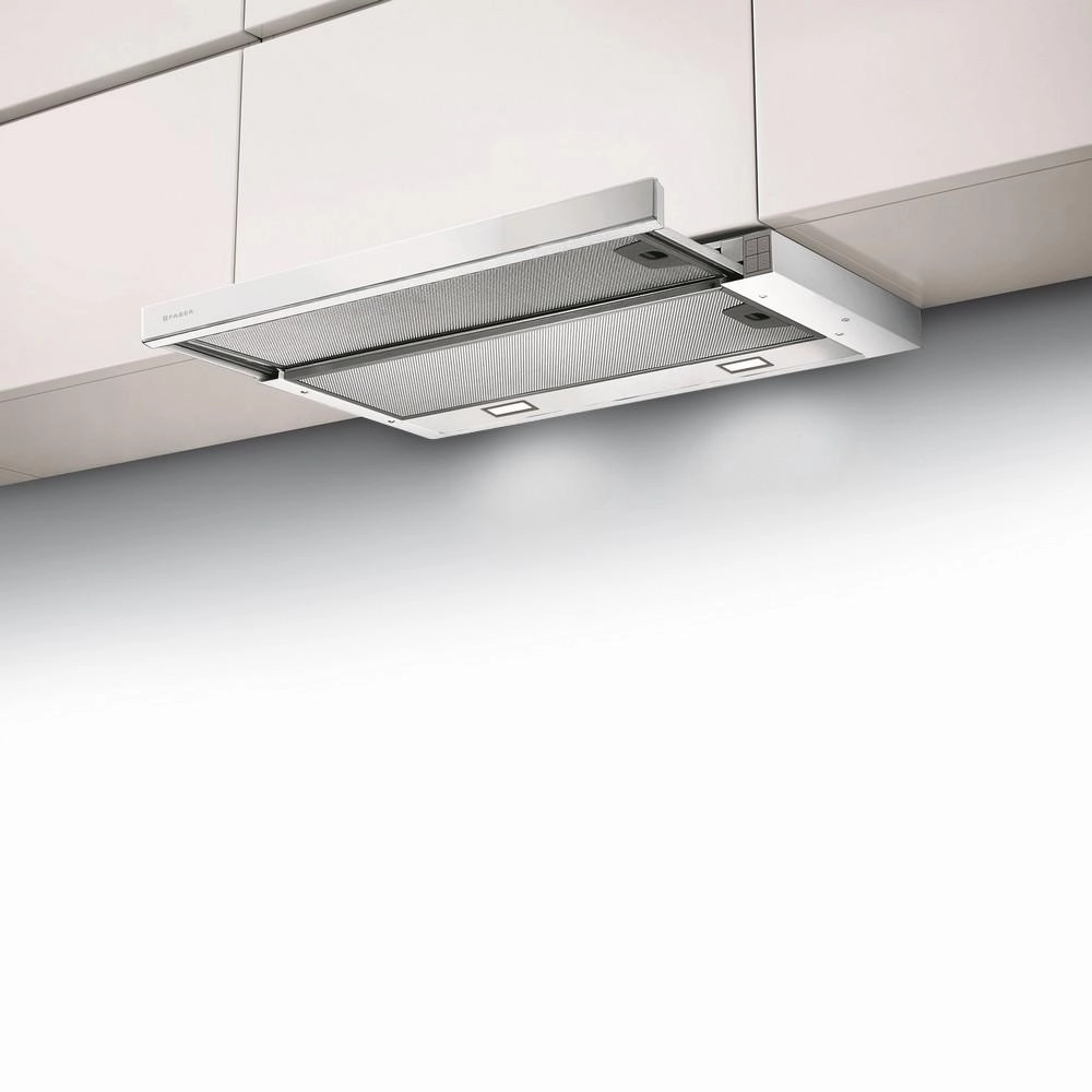 Vestavný výsuvný odsavač FLEXA je velmi elegantním řešením pro kuchyni s omezeným prostorem. Nízká vestavná část odsavače vám navíc umožní využít zbývající místo ve skříňce nad digestoří. Čelní lišta z bílého skla dodává na atraktivitě i tomuto nenápadnému typu digestoře.