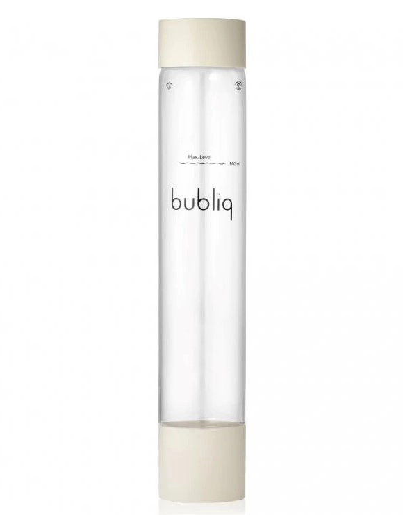 Lahev má objem 800 ml aje vyrobena ze 100% čistého plastu bez BPA a ftalátů. Dodáváno s originální bombičkou CO2 Bubliq s obsahem 425 g (60L). Dostupný v elegantní černé matné, nadčasové stříbrné, moderní měděné, béžové nebo šedé barvě.