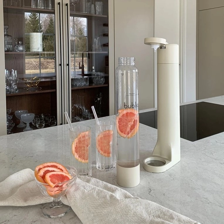 Vytvořte perlivou vodu, šumivé víno nebo třeba limonádu s čerstvým ovocem či zeleninou. S výrobníkem sody Bubliq to zvládnete z pohodlí vašeho domova, aniž byste museli kupovat balenou perlivou vodu. Výrobník sody Bubliq vyniká svým elegantním designem, díky kterému se bude perfektně vyjímat na vaší kuchyňské lince. Zásluhou kompaktních rozměrů přitom nezabere příliš mnoho místa. Je široký pouhých 8 cm. Navíc je kompatibilní s náhradními bombičkami všech značek (vyjma SodaStream CQC – Quick Connect).