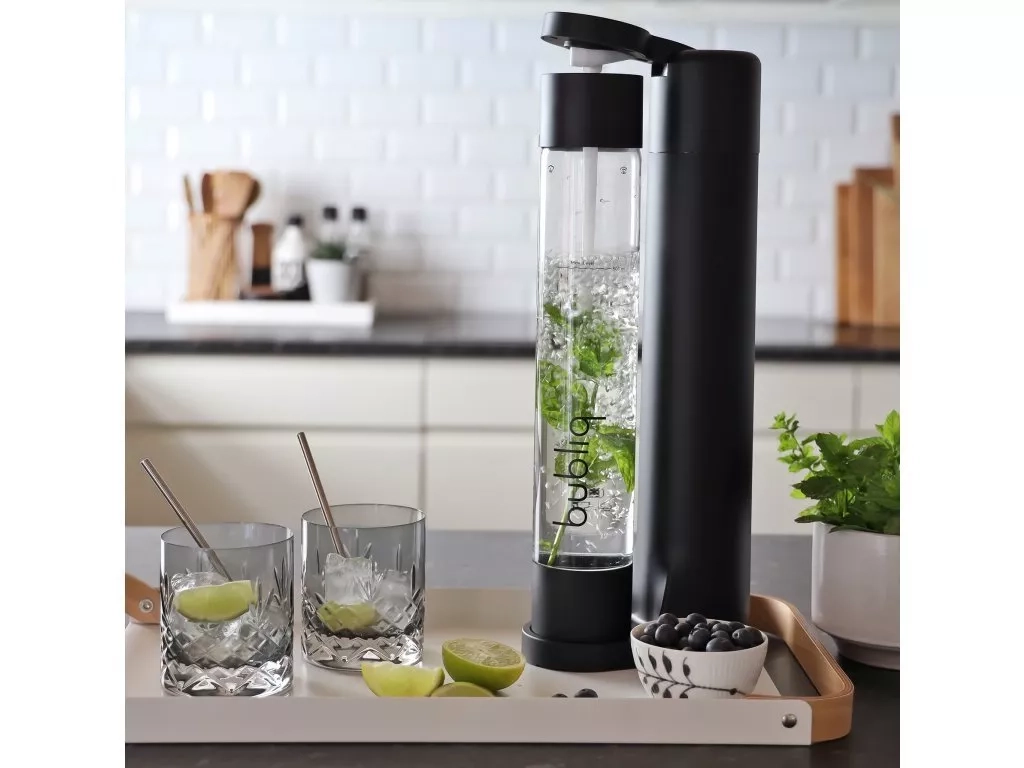 Vytvořte perlivou vodu, šumivé víno nebo třeba limonádu s čerstvým ovocem či zeleninou. S výrobníkem sody Bubliq to zvládnete z pohodlí vašeho domova, aniž byste museli kupovat balenou perlivou vodu. Výrobník sody Bubliq vyniká svým elegantním designem, díky kterému se bude perfektně vyjímat na vaší kuchyňské lince. Zásluhou kompaktních rozměrů přitom nezabere příliš mnoho místa. Navíc je kompatibilní s náhradními bombičkami všech značek. Dostupný v elegantní černé matné, nadčasové stříbrné nebo moderní měděné barvě. Dodáváno s originální náhradní bombička CO2 Bubliq s obsahem 425 g (60L).