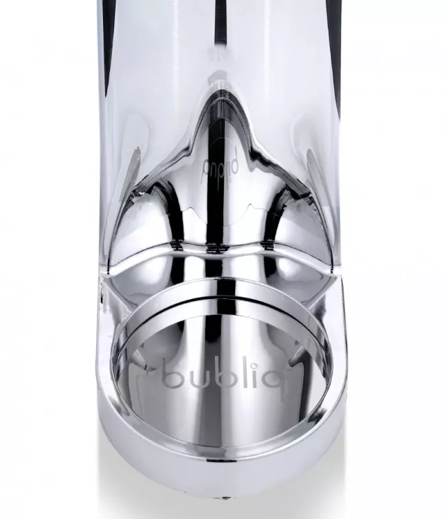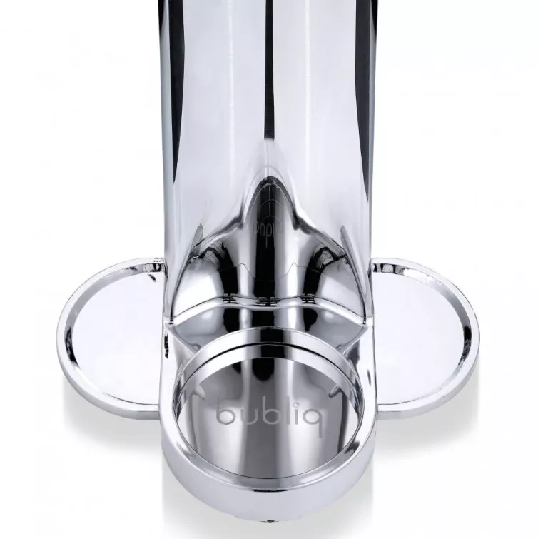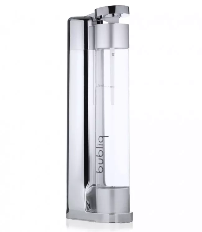 Výrobník sody Bubliq používá patentovanou technologii Air-Charge, díky které je výroba sycených nápojů mimořádně jednoduchá. Stačí jen nasadit uzávěr, vložit láhev na stojánek a párkrát stisknout vrchní část spotřebiče. Lahev není třeba nijak složitě šroubovat ani ohýbat.
